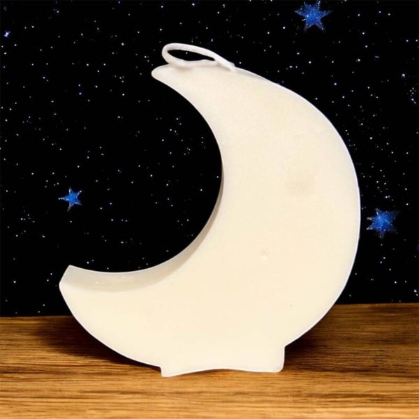 Nouvelle bougie en forme de lune avec des motifs très élégants, fabriquée en cire de soja et parfumée aux fragrances de Grasse, sans CMR ni phtalates, 164 g.